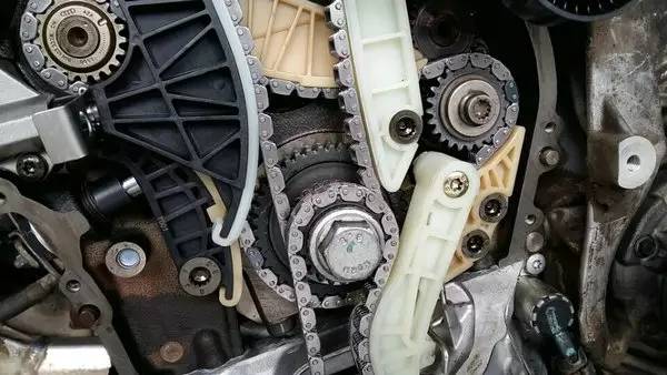 發(fā)動機正時鏈條是驅(qū)動發(fā)動機的配氣機構(gòu),使引擎進、排氣門在適當(dāng)?shù)臅r候開啟或關(guān)閉,以保證發(fā)動機汽缸能夠正常地吸氣和排氣。在有些車型上,像大眾捷達(電噴)、桑塔納2000、寶來、奧迪等,正時皮帶還同時肩負著驅(qū)動水泵的任務(wù)。