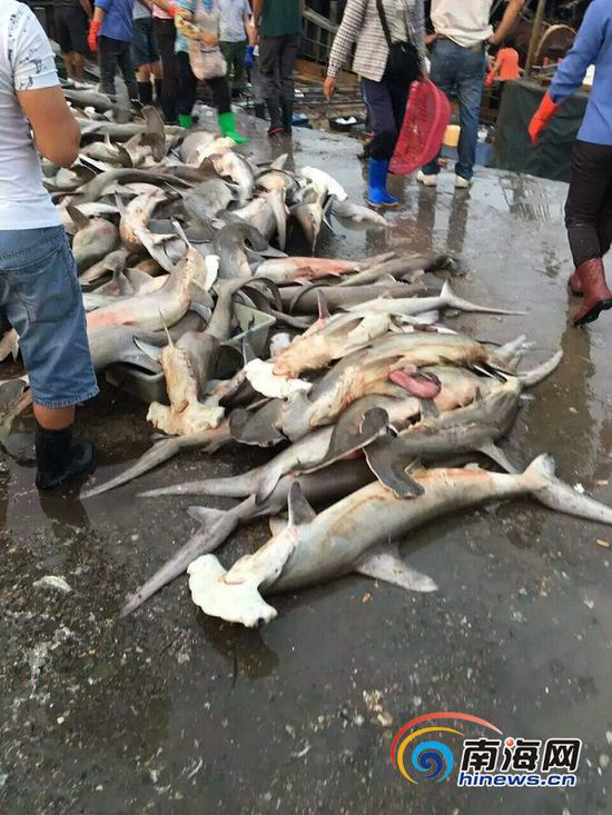 4月9日,有網(wǎng)友在朋友圈中發(fā)消息稱,三亞水產(chǎn)碼頭當(dāng)街低價(jià)售賣瀕危保護(hù)動(dòng)物錘頭鯊,數(shù)量達(dá)近百條。網(wǎng)友供圖 另一位現(xiàn)場(chǎng)目擊者梁某告訴南海網(wǎng)記者,他早上10點(diǎn)到達(dá)水產(chǎn)碼頭時(shí)錘頭鯊已經(jīng)不在現(xiàn)場(chǎng),不過地上仍留有血跡。“在國(guó)外如要去觀測(cè)點(diǎn)觀看錘頭鯊,一般得花費(fèi)數(shù)萬元,沒想到水產(chǎn)碼頭竟然幾塊錢一斤售賣如此瀕危的動(dòng)物”。 據(jù)介紹,第16屆華盛頓公約CITES締約國(guó)大會(huì)上,各締約國(guó)通過投票,采納了將錘頭雙髻鯊提升入附錄II(CITES II)的提案,它們將得到國(guó)際公約的庇護(hù),中國(guó)是CITES的簽署國(guó)。 南海網(wǎng)將持續(xù)關(guān)注。