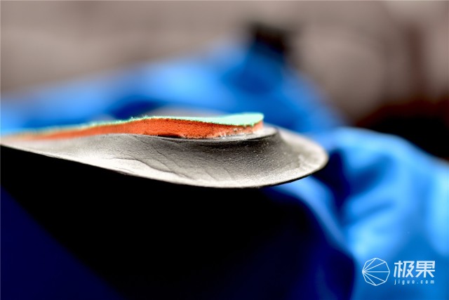 防踢型的鞋頭設(shè)計,在越野跑時快上快下的時候能減少外部重力對腳部的傷害。腳跟后采用了可反光的提手,在穿鞋時更為方便,厚達(dá)5mm的鞋墊讓腳感更為舒適。