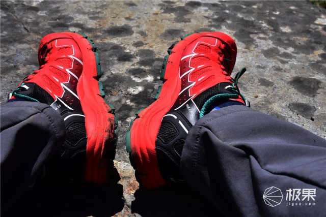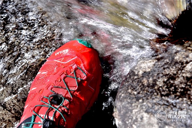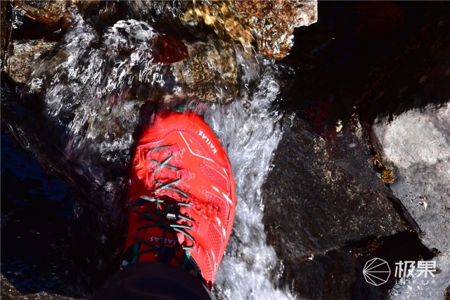 這次在理縣涼臺溝,從海撥3400的公路端下車,上升到4000左右的海撥。經(jīng)歷了多種路段,有被泥石流沖毀的柏油路、滿是碎石的河道、松軟的草地。濕滑的雪地。飛翼2.0都能非常輕松的勝任,V底非常出色的防滑技術(shù)能有效的保證你的腳部不會被扭傷,出色的防水功能能讓你在跑山的過程中保護(hù)腳部。