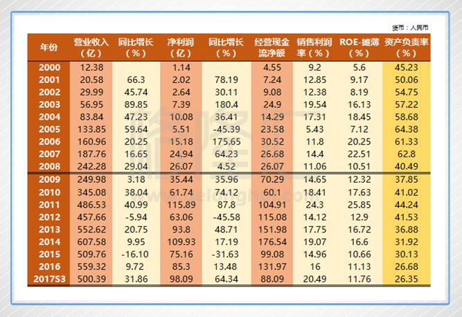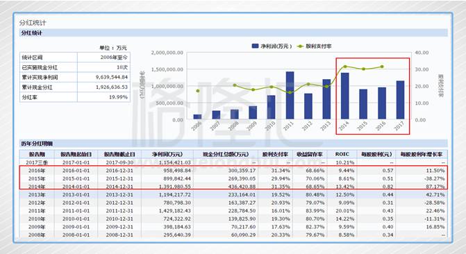(2)2009年-2017年第三季度,除了上述每三年碰上一年差年景的規(guī)律外,其余時(shí)間,皆為營收增速遠(yuǎn)小于凈利增速,而觀察其銷售凈利率無一年的數(shù)據(jù)會(huì)低于14%,這九年的平均水平,明顯高于前九年。而且這九年經(jīng)營現(xiàn)金凈額明顯跟前九年不是一個(gè)等量級(jí)別。綜合判斷出,這一個(gè)周期為海螺水泥在擴(kuò)大優(yōu)勢確立龍頭地位的過程。