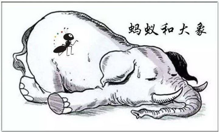 大型的公司需要有很多的市場(chǎng)才能滿足生存,就像大象一樣,要有足夠的食物讓大象來(lái)維持生存。小企業(yè)就像一只螞蟻,只要有很小的市場(chǎng)就能夠生存下去,所以只要躲的好就可以生存,大象很難踩死螞蟻。