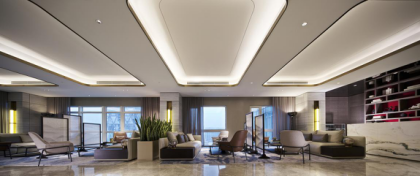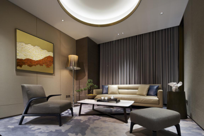 整體風(fēng)格以皇城文化為依托,從宮殿中提煉色彩、藝術(shù)、材質(zhì)為元素,山禾金緣在材料、色彩和造型上對(duì)傳統(tǒng)進(jìn)行了創(chuàng)新。通過東方禪意美學(xué)的組合方式,將其喧囂張揚(yáng)的皇城元素進(jìn)行了重組。在泰禾金尊府營銷中心,古堡灰的地面、米黃色絹質(zhì)布藝、希臘白玉墻體,所到之處,尊貴、奢華、自然理念貫穿空間,既保有現(xiàn)代氣息又不失皇城莊重的底蘊(yùn)。