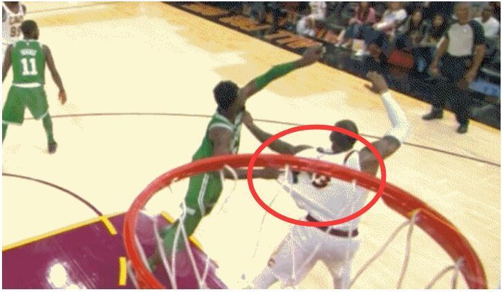 杰倫-布朗輕輕一抓,小皇帝的球衣就成了這樣。
