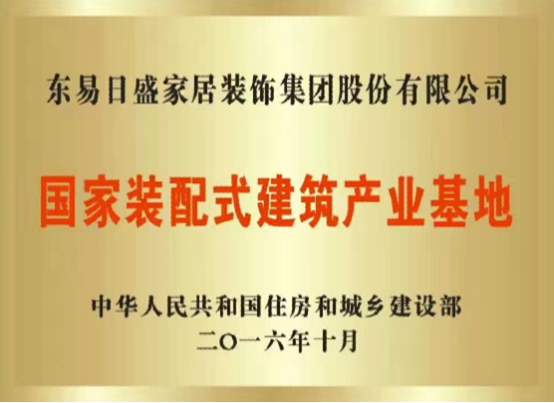 2016 年 10 月 ,東易日盛家居裝飾集團股份有限公司就被中華人民共和國住房和城鄉(xiāng)建設部授予“國家裝配式建筑產業(yè)基地”,成為目前住建部唯一一家以家裝為主業(yè)的“國家裝配式建筑產業(yè)基地”。