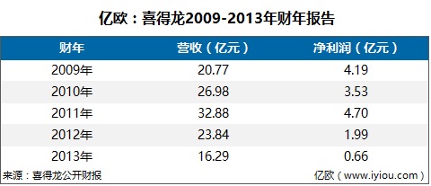 分析財(cái)報(bào)我們可以看到,喜得龍從2009年上市以來(lái)到2011一直呈現(xiàn)增長(zhǎng)態(tài)勢(shì)。不過(guò)到了2012年,喜得龍的業(yè)績(jī)開(kāi)始下滑。到了2013年,它的營(yíng)業(yè)收入甚至少于2009年剛上市的時(shí)候。