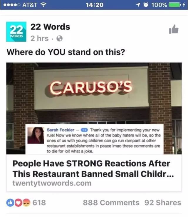 盡管有些孩子確實很乖,但為了整體餐廳環(huán)境,他還是決定禁止兒童進(jìn)入