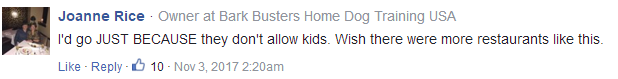 “太棒了!期待更多無孩子場所!”