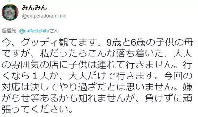 我是9歲和6歲孩子的媽媽,平常我也會注意某些場合自己出門而不要帶他們一起,所以我一點都不覺得老板做得太過火