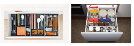 在歐派櫥柜系統(tǒng)設(shè)置里具備完善的分區(qū)抽屜,將備餐工具分門別類收納,既騰出臺(tái)面?zhèn)洳涂臻g,又能在需要使用時(shí)快速找到。甚至還貼心的準(zhǔn)備了抽拉餐臺(tái),平時(shí)藏于臺(tái)面下,使用時(shí)可以提供長達(dá)81cm的備餐區(qū)域,是小廚房的必備神器。在這樣的分區(qū)清晰的廚房里,所有廚具和調(diào)料、工具都被井然有序地歸位了。你可以按照自己的需求隨心所欲地“調(diào)兵遣將”,洗菜、切菜、炒菜都能在合適的區(qū)域有序地進(jìn)行,再也無需“兵荒馬亂”。