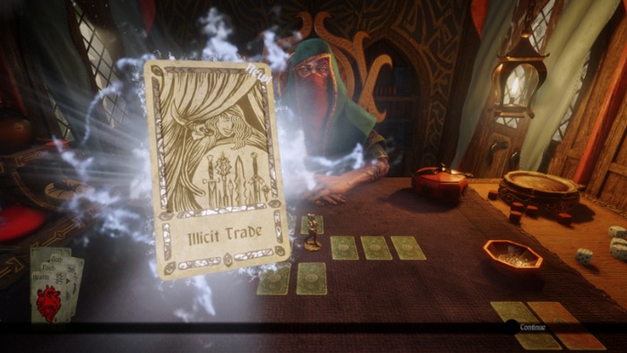 第二張圖有2個地方收小弟,分別是舞臺和治療所。舞臺:老板發(fā)現你是通緝犯,讓你代替死去的演員去演戲,選同意,然后女巫上臺,選擇親吻女巫,只后吃發(fā)霉的面包(我開始還懷疑會中詛咒,就是2張生命傷害牌,還是和獎勵一起進行選牌的,相當于無),然后關在籠子里的野豬上臺,選向野豬求婚,然后帝國將軍進場,選侮辱帝國,增加了一張災禍怪物,一個觀眾覺得你說的對,手下+1,之后老板被你的演技感動。。。手下再+1,舞臺就這2人;治療所:進去之前準備50塊大洋,你看的關了門,門口有鐵匠和女人生病,選另一條路,選暴力破門要過鐘擺判定(極難),過了也掉聲望,進去發(fā)現一個很像鳥的女人,選交流就提示雙胞胎手下,其實只有一個是妹妹,她姐姐老難找了,然后進去找到煉金師,給他50塊,他會給你十幾個解藥,選等等的話只給一個(門口的就只能救一個),然后煉金師和門口的兩個人加入,治療所一共是4個,目前收集了8個人