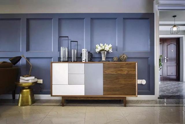 進(jìn)門的另一番風(fēng)景。在五彩斑斕的世界,藍(lán)色寓意著浪漫,用藍(lán)色的質(zhì)感和皮質(zhì)材質(zhì)相結(jié)合,襯托出男士紳士的感覺。所有的搭配精挑細(xì)選無不呼應(yīng)浪漫主題,既不過分張揚(yáng),而又恰到好處地把空間的清新氣息滲透到每個角落。臺燈和落地?zé)簦阋詽M足主人對閱讀的需求。