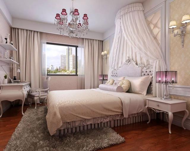 為上初中的女兒精心打造的閨房,主要滿足睡眠、學(xué)習(xí)兩大需求。風(fēng)格意境上追求輕盈和浪漫,通過完美的曲線,精益求精的細(xì)節(jié)處理,層次分明的造型吊頂下是一盞純美的水晶吊燈,內(nèi)斂而端莊,在淡淡的玫瑰香氣與素雅的裝飾中,自有一種出眾的尊貴歐式氣氛環(huán)繞于身,帶給少女不盡的舒服觸感與幸福體驗(yàn)。