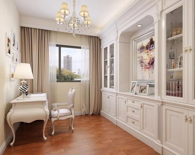 延續(xù)客廳浪漫大氣的設(shè)計(jì)手法,打造頂天立地的柜體收納,將主人鐘愛的書籍和收藏品完美珍藏,精致的油畫裝飾,更彰顯主人的貴族品味。閱讀區(qū)域則坐落在窗邊,看書也能享受到陽光的沐浴和微風(fēng)的輕拂,難道不是一種愜意嗎?