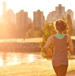 慢跑在小區(qū)園林的健康跑道上,