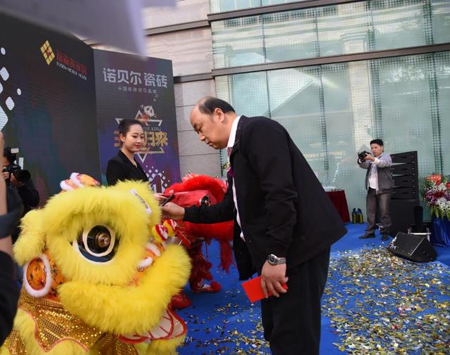 (成都市凱華美基建材有限公司總經(jīng)理王國有先生和杭州諾貝爾陶瓷有限公司副總裁宋耀龍先生在開業(yè)現(xiàn)場為祥獅點睛)