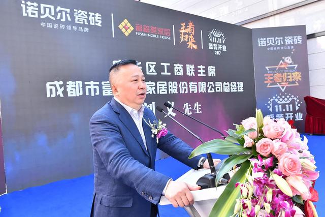 (成都富森美\u00A0家居\u00A0股份有限公司總經(jīng)理劉義先生在開業(yè)現(xiàn)場致辭)