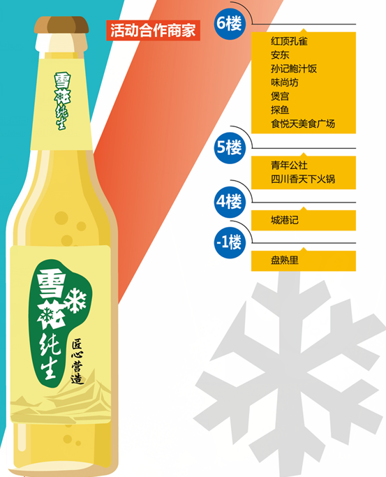 屆時,在華潤萬象城內(nèi)將會有雪花純生啤酒主題展示專區(qū),還有合影專區(qū),消費者在專區(qū)拍照發(fā)至朋友圈集滿一定數(shù)量贊便可以獲得驚喜禮品。