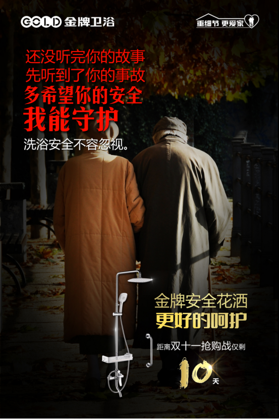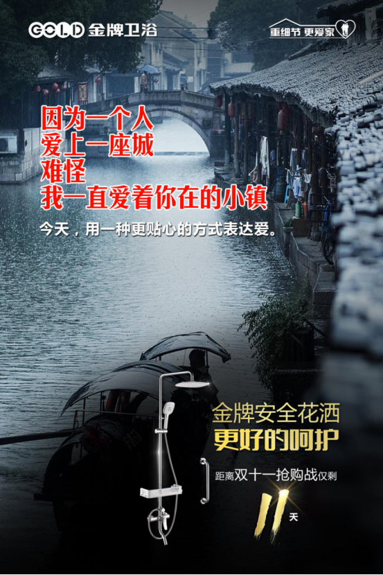 而就在時(shí)間剛剛跨入11月的大門(mén)之時(shí),有一股不一樣的風(fēng),來(lái)自金牌衛(wèi)浴一系列的走心廣告就開(kāi)始強(qiáng)行植入雙11,小編甚至懷疑金牌衛(wèi)浴根本不是賣(mài)衛(wèi)浴的,究竟是來(lái)走心的,還是來(lái)走心的?