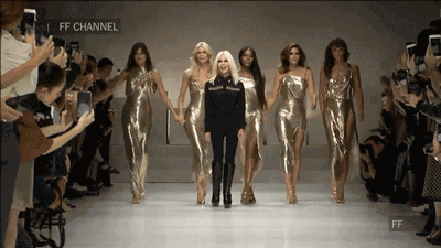 Versace 春夏大秀謝幕的時候請出了五位90年代的傳奇超模,簡言之,就是一群一群走一步就要好多萬美元的女人。