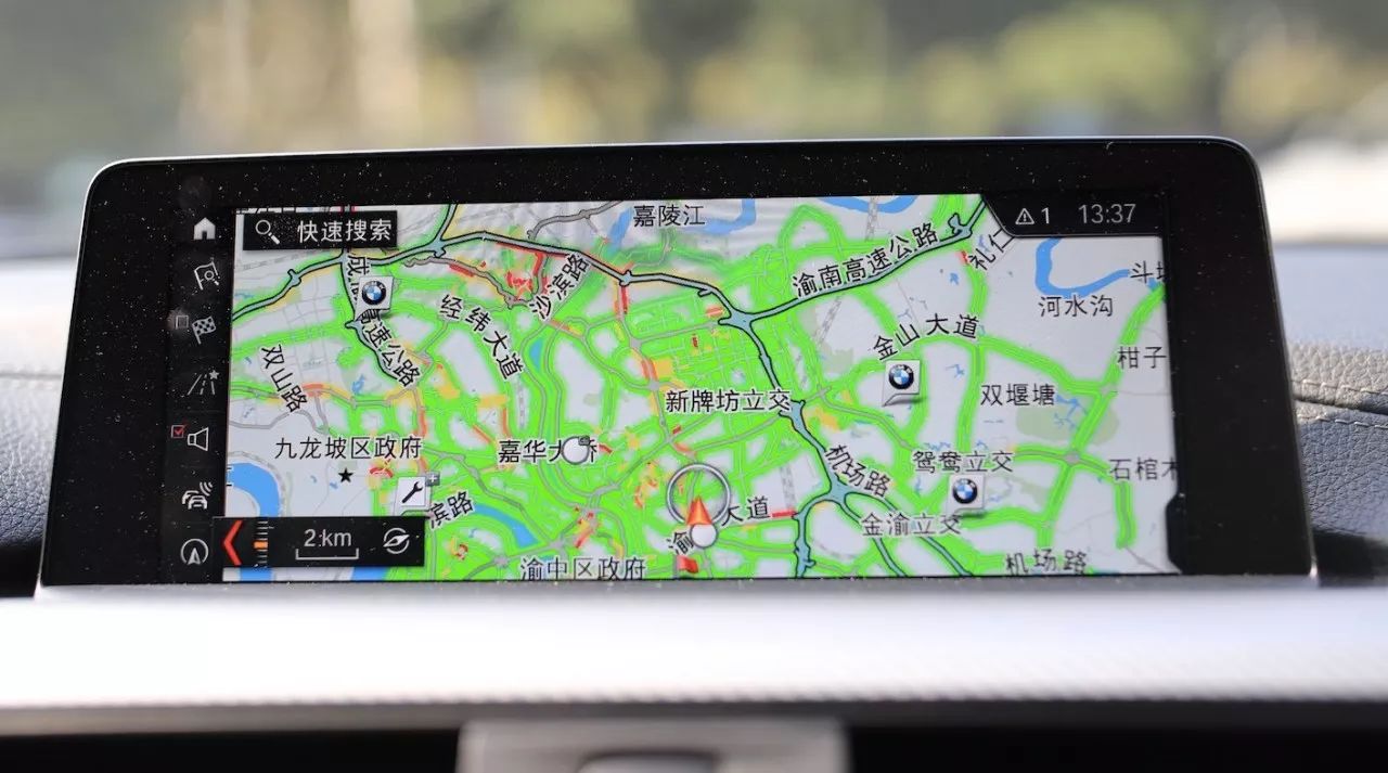 對于駕駛者而言除了駕駛樂趣,科技型配置也十分重要。除了全液晶的儀表盤,這臺寶馬3系的8.8英寸橫置大屏實用性很高,主辦方因為重慶的路況特地提醒我們要體驗下寶馬的互聯駕駛系統,中控空屏幕上時時的路況都會在標注出來,暢通的用綠色標注、擁堵的路況根據車況用紅色和黃色標注,這對于駕駛者幫助很大,并且寶馬的認證4S店也會在導航上顯示,緊急情況下對駕駛者的幫助會很大。