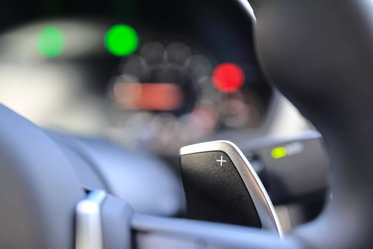 方向盤的指向性這里就不贅述,這已經是寶馬品牌與生俱來的基因。寶馬M的運動多功能方向盤真的能取悅駕駛者,方形盤手感好到沒的說,材質是干碳纖、麂皮包覆,手感極贊,我也了解到為什么很多人中毒要改裝M的方向盤了。在快速打圈的過程中握感很穩,多功能方向盤上還帶有換擋撥片,進一步增加了駕駛樂趣。