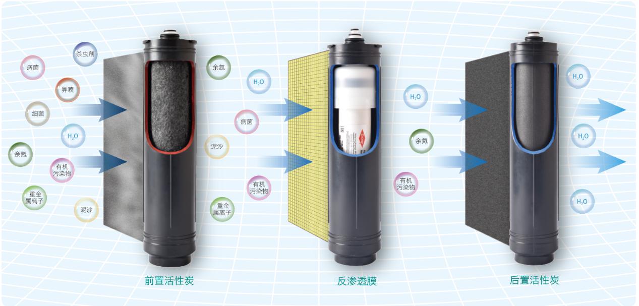 在傳統(tǒng)凈水領(lǐng)域,為了維持濾網(wǎng)的壽命,許多品牌會采用PP棉等微過濾方式作為第一道過濾去去除水中的大顆粒雜質(zhì)。然而全新升級的VWP3.2A-N8反滲透凈水機在三級濾網(wǎng)中均作為改造,利用前后置高效活性炭濾網(wǎng)來取代低精度的初級濾網(wǎng),不僅水質(zhì)更純正,RO反滲透膜的壽命也大大提升。該款凈水機的RO膜采用的是美國原裝進口陶氏反滲透膜,0.0001微米的過濾精度,進一步改善水質(zhì),以適合各類人群飲用。
