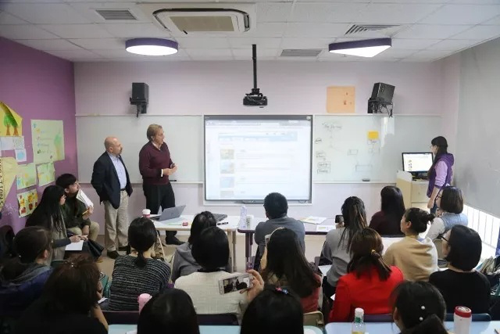 在e-Learning平臺(tái)的理念探討結(jié)束后,兩位專家來到教室與瑞思老師面對(duì)面進(jìn)行課堂實(shí)踐切磋。瑞思優(yōu)秀教師代表通過demo課展示了瑞思課堂中對(duì)思維品質(zhì)培養(yǎng)的方式方法,得到了高度認(rèn)可,兩位美國專家也從美國教育和文化的角度,給予了實(shí)際的指導(dǎo)。