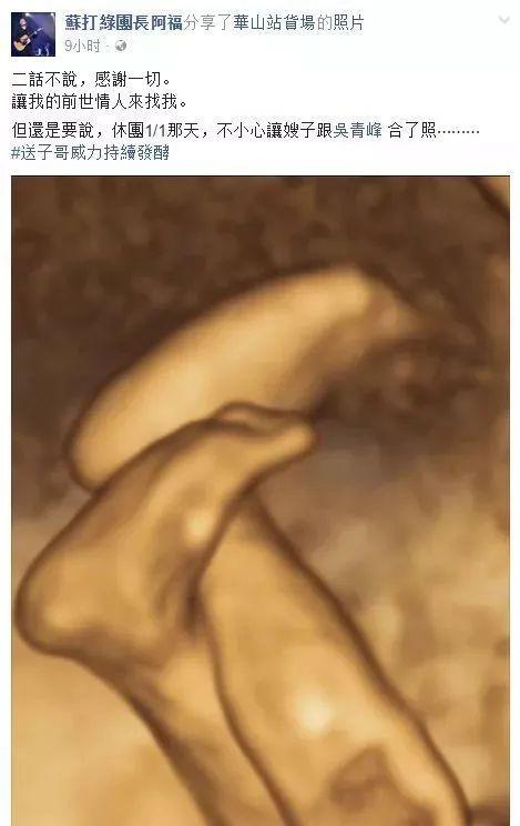 就連蘇打綠的團(tuán)長阿福也是在老婆和吳青峰合照后,有了迎來新生命的喜訊……