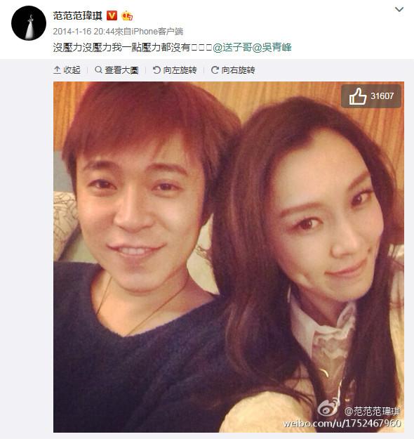 自此,吳青峰送子哥的綽號是越傳越遠(yuǎn)了,于是范瑋琪就挑釁似的發(fā)了和青峰的合照,然后說自己一點壓力也沒有。
