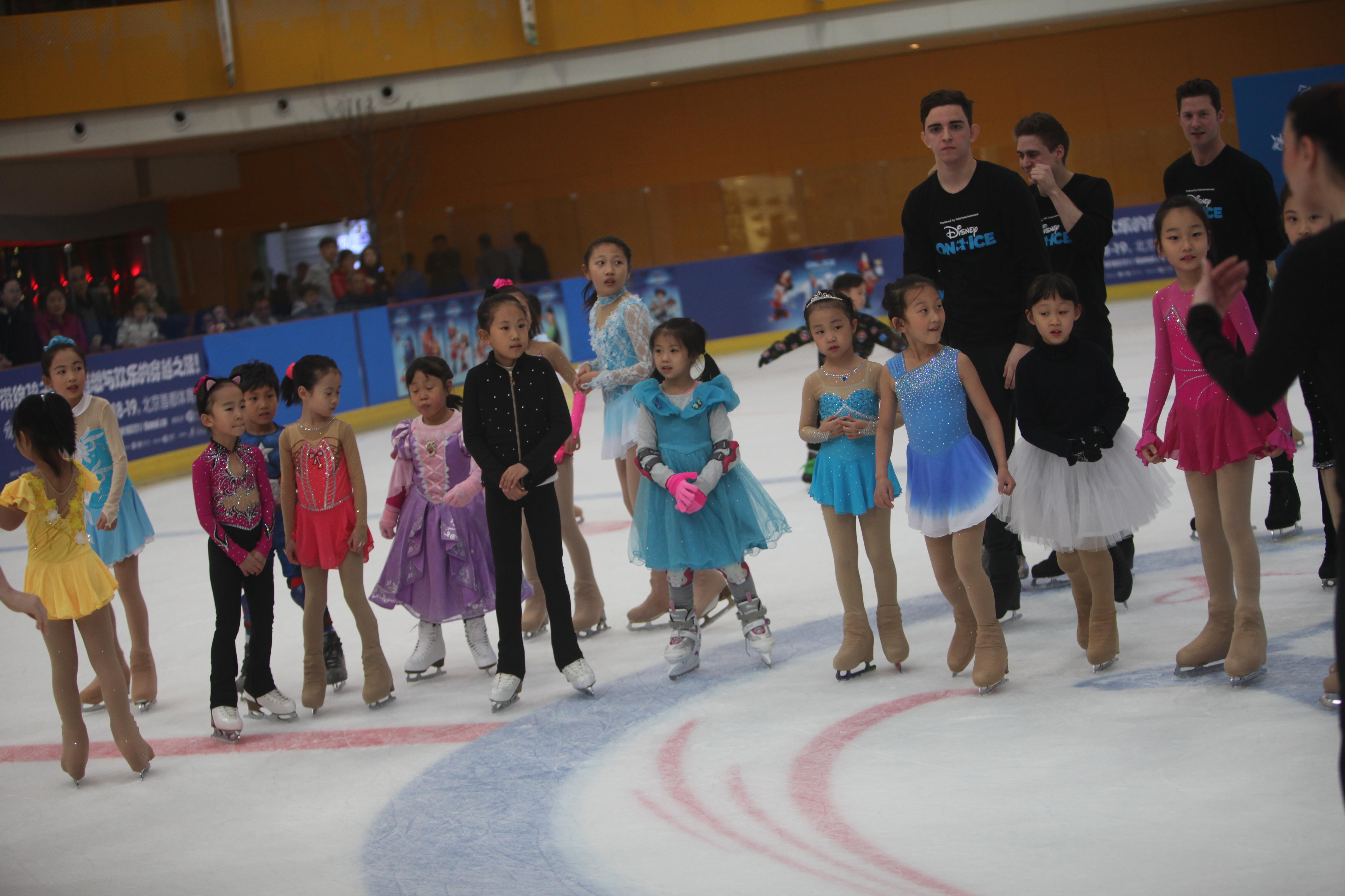 “冰上迪士尼?魔幻時空”中國巡演北京站發(fā)布會的地點設(shè)在了全明星滑冰俱樂部,為了滿足小朋友們對花樣滑冰的愿望,主辦方特意為小朋友們設(shè)置了互動環(huán)節(jié),邀請迪士尼的卡通明星們手把手教小朋友溜冰技巧,以這樣的方式來滿足他們的“冰上童話夢”。