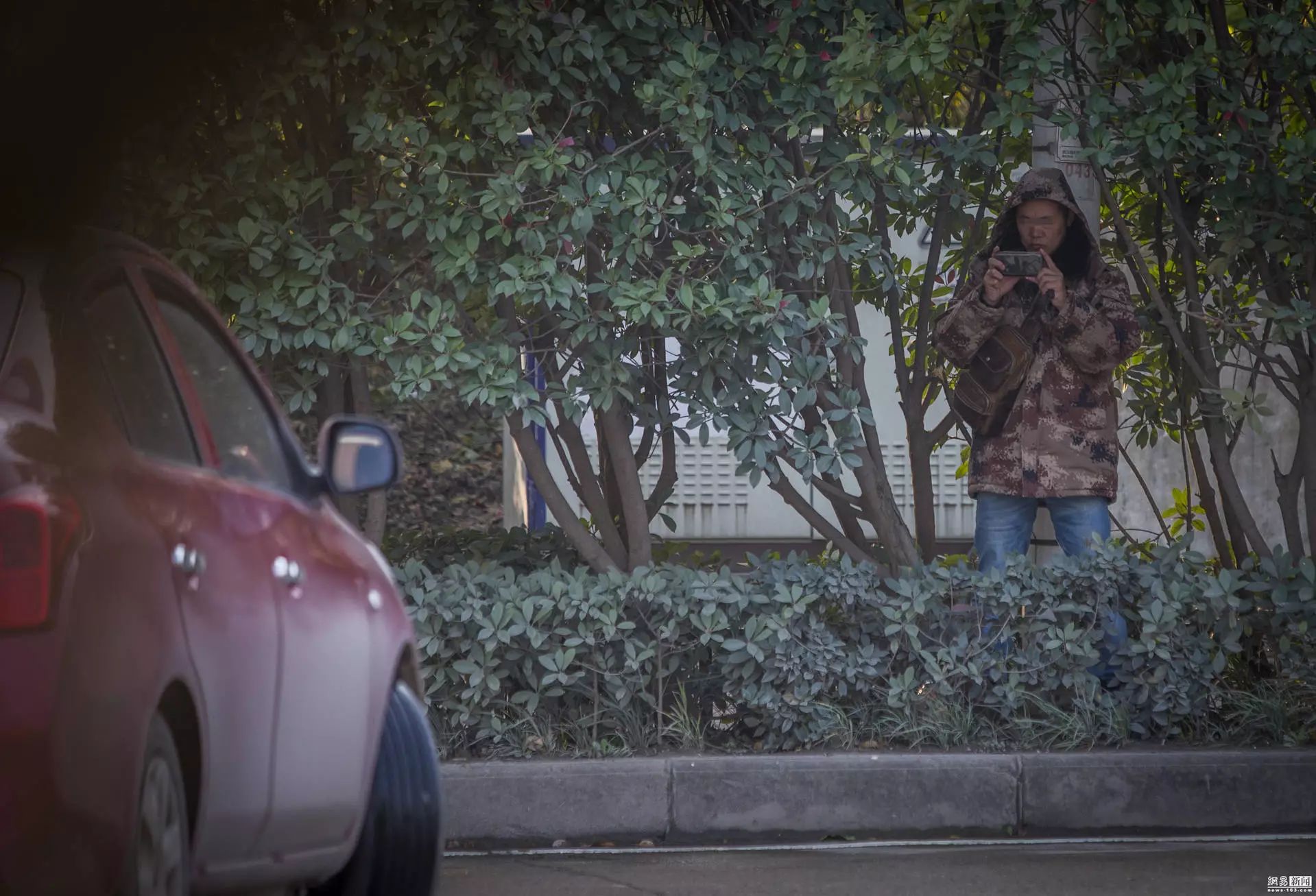 武漢市民穿迷彩服躲草叢拍違章(如圖)