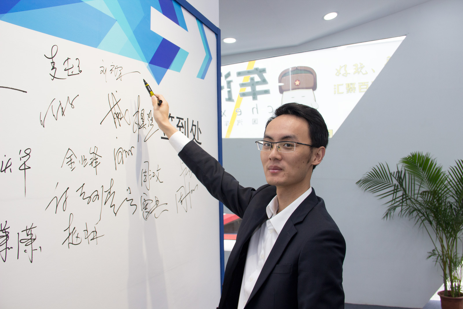 東風(fēng)標(biāo)致廣深區(qū)域的銷售總監(jiān)劉禮軍先生(中)與車訊互聯(lián)|拆車坊廣東大區(qū)營銷中心運(yùn)營副總周益龍先生(左)和車訊互聯(lián)|拆車坊廣東大區(qū)營銷中心區(qū)域經(jīng)理梁偉慶先生(右)合影