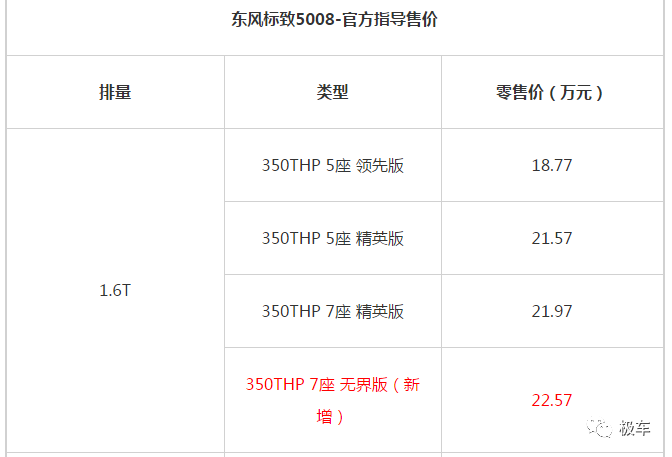 東風標致5008無界版在全國陸續(xù)上市,兩款新車型售價分別為:350THP 7座無界版售價 225,700元;380THP 7座無界版售價 235,700元。至此,5008在售的7座車型增加到6款,覆蓋22-28萬價格區(qū)間,為用戶提供了更多“品質(zhì)”選擇。