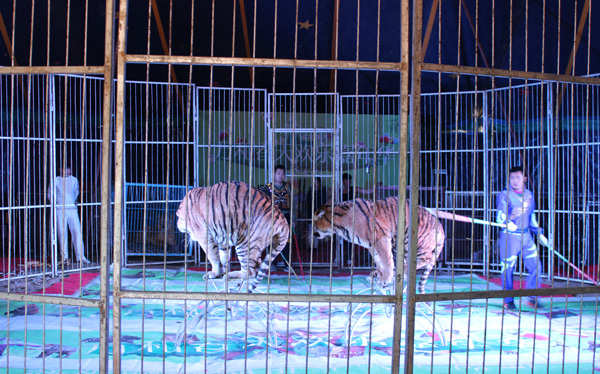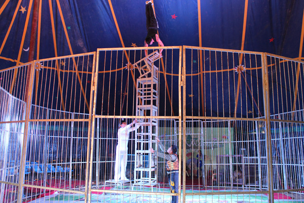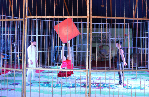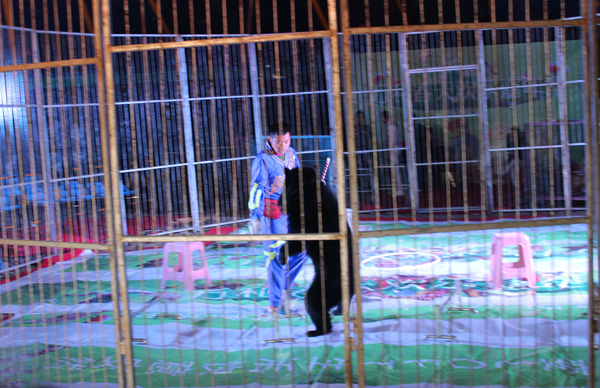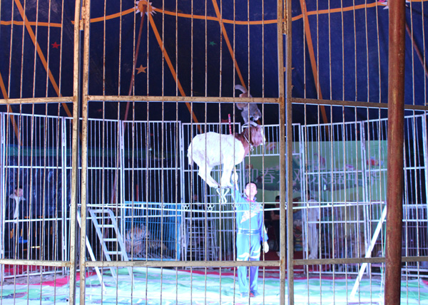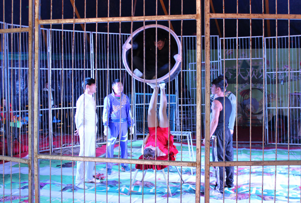 馬戲團(tuán)現(xiàn)場,最吸引人的莫過于動物表演,其中包括虎獅表演、老虎跳圈、猴子騎山羊、黑熊運(yùn)動會等。與叢林猛獸如此近距離的接觸和動物們的精彩表演,令現(xiàn)場客戶大飽眼福。