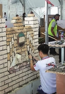 在4天的比賽中,梁智濱要在22個(gè)小時(shí)內(nèi)砌出3面墻。“比賽要求比較高,不是隨便砌起來就好。”梁智濱說,一方面是要讀懂圖紙,不僅尺寸要量好,誤差不能超過1毫米,同時(shí)墻上圖案也要逼真;另一方面,砌的墻垂直度要準(zhǔn)確,不能歪。此外,“墻的‘顏值’越高,分?jǐn)?shù)就越高”。