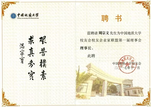 據(jù)了解,中國(guó)地質(zhì)大學(xué)培養(yǎng)了30多萬校友,新任“招才顧問”周宗文也是中國(guó)地質(zhì)大學(xué)校友。