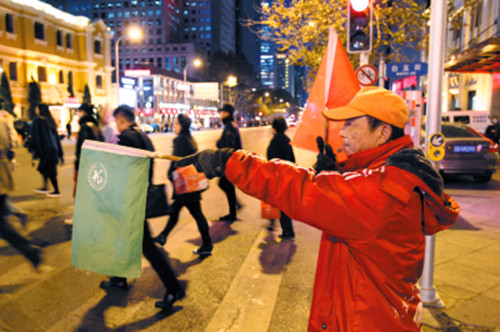 我們這些志愿者都特別看重自己的“身份”,我聽說(shuō)沙河口區(qū)志愿者管延江前陣子傷了腿,急得不得了,想趕緊養(yǎng)好傷上崗。今年開春時(shí),有一位患有腦血栓的老人過(guò)馬路行動(dòng)不便,老管幫著扶過(guò)去,走到路中間變燈了,他一揮旗子,準(zhǔn)備起步的司機(jī)忙停下車,耐心等待他把老人扶過(guò)去才發(fā)動(dòng),這讓老管他念念不忘,說(shuō)明不管司機(jī)還是路人,這些年大家素質(zhì)都提高了,越來(lái)越文明禮讓了。