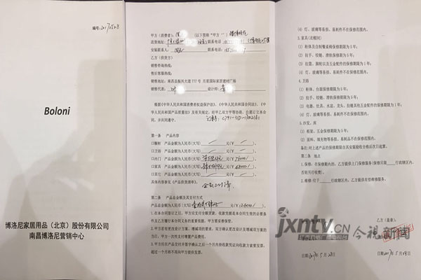江西網(wǎng)絡(luò)廣播電視臺訊(記者 良保 實習(xí)生 黃智丹)“今年5月28日,花12.4萬元定購了一套博洛尼黃橡顏色全套家居產(chǎn)品,貨到后發(fā)現(xiàn)衣柜、木門、墻板均出現(xiàn)明顯色差!苯眨喜忻裰苄〗阆蛴浾叻从,到現(xiàn)在已經(jīng)半年了,廠家都沒有給出一個解決的方案。