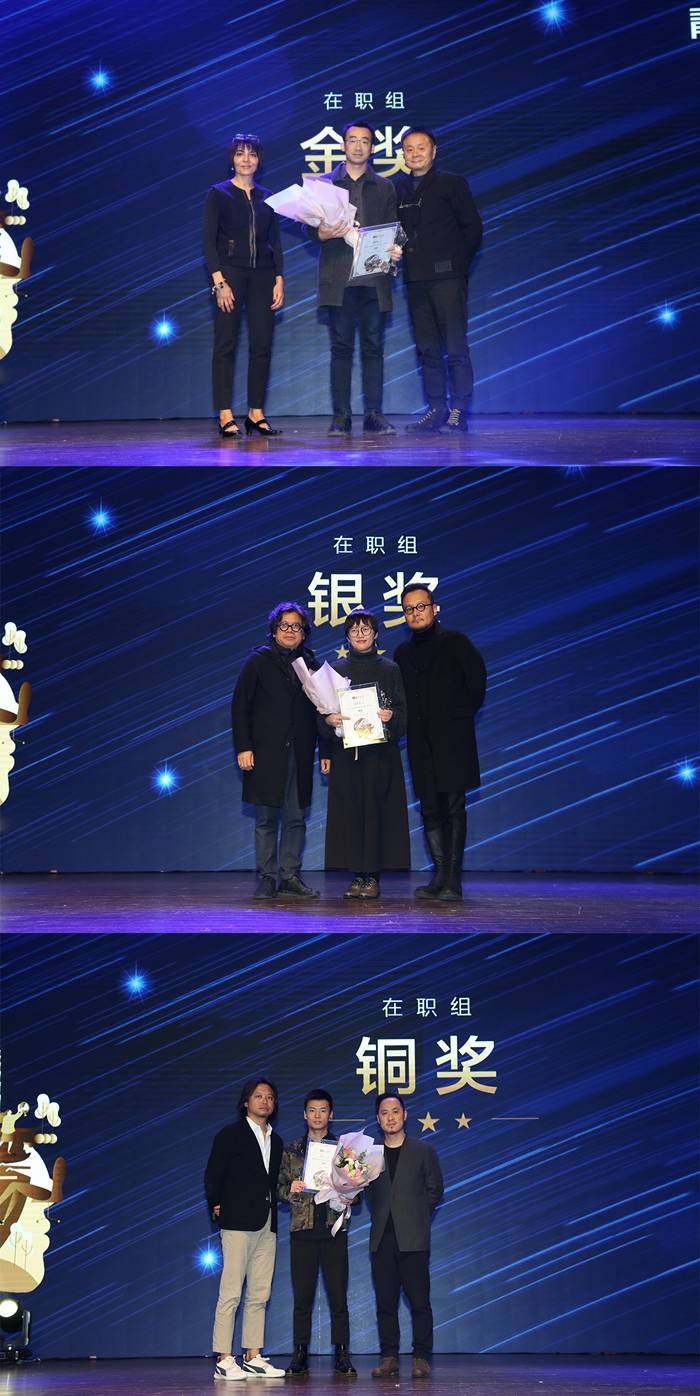 在職組金獎獲得者為潘錦秋設(shè)計師、 銀獎獲得者為李傲芳設(shè)計師、銅獎獲得者為陳正設(shè)計師與頒獎嘉賓共同合影留念。