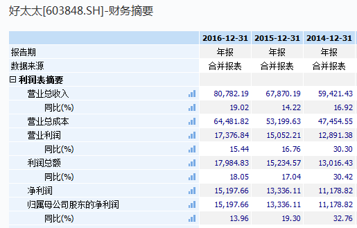 從公司負(fù)債上看,好太太的特點(diǎn)在于公司沒有償債風(fēng)險(xiǎn)。在2016年公司資產(chǎn)負(fù)債表數(shù)據(jù)中,好太太公司沒有交易性和衍生金融負(fù)債,沒有短期和長期借款,公司負(fù)債絕大部分都是經(jīng)營性負(fù)債、員工薪酬及稅費(fèi),負(fù)債合計(jì)為1.72億元,當(dāng)年資產(chǎn)負(fù)債率僅為22%。這可以說明好太太公司目前財(cái)務(wù)狀況良好,從側(cè)面也反映出公司近期沒有太大的財(cái)務(wù)風(fēng)險(xiǎn)。
