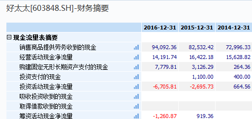 從好太太近三年的現(xiàn)金流量情況來看,2014-2016年公司經(jīng)營性現(xiàn)金流凈額均維持在1.5億元上下。其中2014年和2015年公司經(jīng)營性現(xiàn)金流凈額均略高于當(dāng)年凈利潤,說明當(dāng)年公司銷售回款能力情況良好。在2016年,公司經(jīng)營性現(xiàn)金流凈額開始低于當(dāng)年同期凈利潤,且投資現(xiàn)金流凈額絕對(duì)值逐漸變大,說明公司目前處于高速發(fā)展階段,在逐步加快市場擴(kuò)張,對(duì)外投資需求正在加大,此時(shí)選擇上市融資也體現(xiàn)了其日益擴(kuò)大的資金需求。