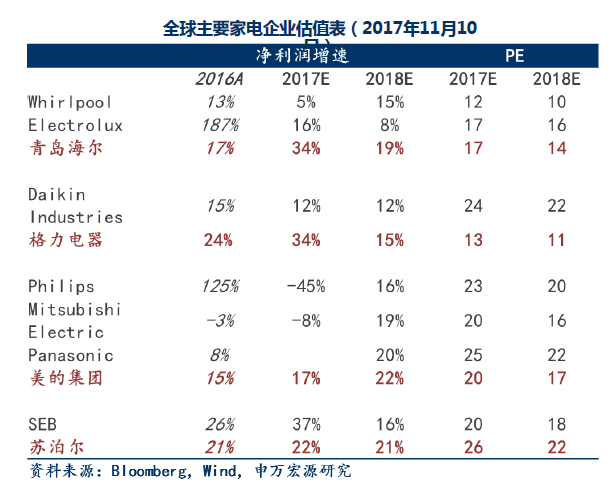 從全球主要家電估值表來(lái)看,我大A股標(biāo)的凈利潤(rùn)增速比國(guó)外強(qiáng)、PE估值又比他們低,所以有業(yè)績(jī)支撐繼續(xù)上漲。