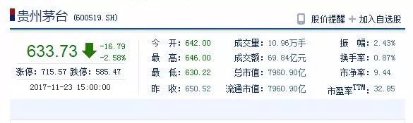 而今天,截止午盤,茅臺最新每股股價縮水至626元。因?yàn)楣蓛r下跌,部分酒商都不敢囤酒了。