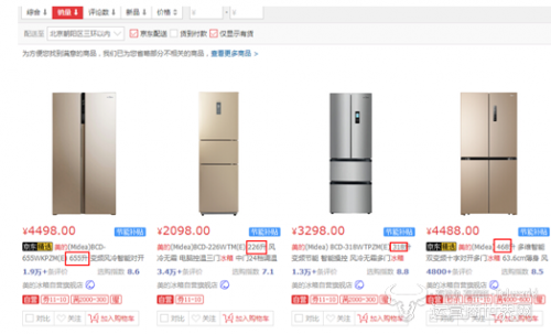 據(jù)悉,在冰箱品類中,京東在11月11日當(dāng)天450升以上大容量冰箱已經(jīng)占到整體銷售額的60%。這也就不難理解美的在銷售額上沒(méi)有強(qiáng)勁表現(xiàn)的原因了。