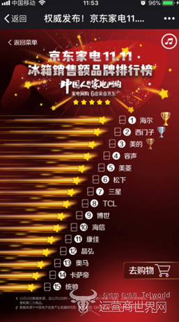 據(jù)運(yùn)營(yíng)商世界網(wǎng)編輯了解,京東家電11.11冰箱銷售額品牌排行榜冠軍的寶座被海爾奪得,西門(mén)子居于第二位,美的冰箱比其空調(diào)的排名下降了一位,屈居第三。
