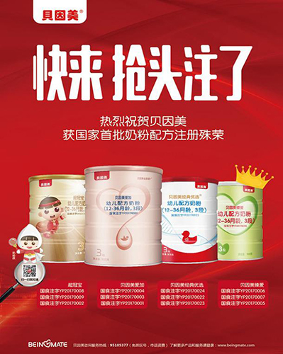 史上最嚴(yán)的《嬰幼兒配方奶粉產(chǎn)品配方注冊管理辦法》出臺,奶粉行業(yè)市場競爭激烈,今年8月3日國家食品藥品監(jiān)督管理總局公布首批嬰幼兒配方奶粉配方注冊獲批名單,貝因美勇拔頭籌,取得了12個產(chǎn)品配方注冊號,以傲人戰(zhàn)績躋身“首批俱樂部”。 截止目前,貝因美已獲得國家食藥監(jiān)管總局注冊通過了15個系列45個配方,成為注冊配方數(shù)量最多的奶粉企業(yè),保持了行業(yè)領(lǐng)軍地位。
