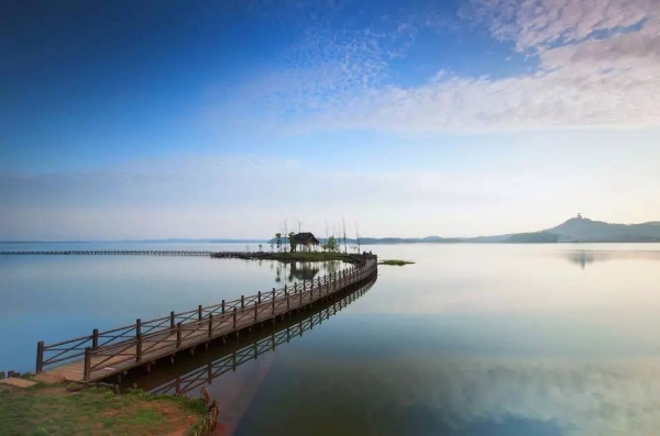 平天湖,是安徽人眼里的西湖,猶如一位嫻靜的少女安臥于池州市東南。湖面天然去雕飾,好似一幅淡淡的水墨畫(huà),湖水清澈無(wú)污染,處處彰顯著自然之美。湖邊蜿蜒的木棧橋駛向天際,巧妙地勾勒出幽雅的意境。
