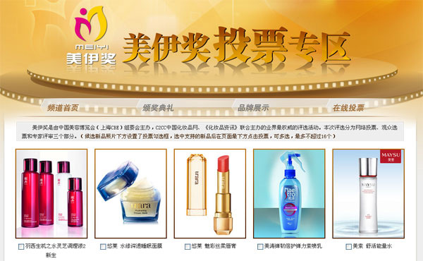 2011美伊獎(jiǎng)網(wǎng)絡(luò)投票開始了!進(jìn)入投票》》》評選出你最喜歡的化妝品\u00A0