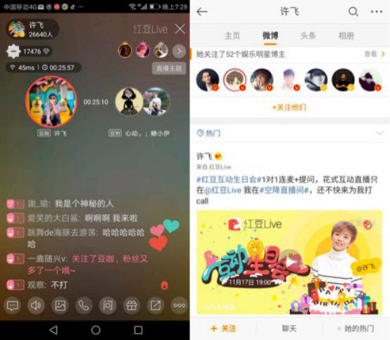 與傳統(tǒng)的明星線下互動生日會相比,紅豆Live的直播互動生日會使得明星、粉絲參與成本低,節(jié)省了很多時間與人力,粉絲們在直播間能有更多的機會與明星直接連麥對話,敞開心扉的聊生活、聊作品。